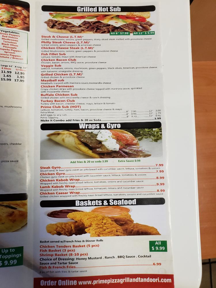 Prime Pizza and Grill 3rd Party Kabob Tandoori Specialties